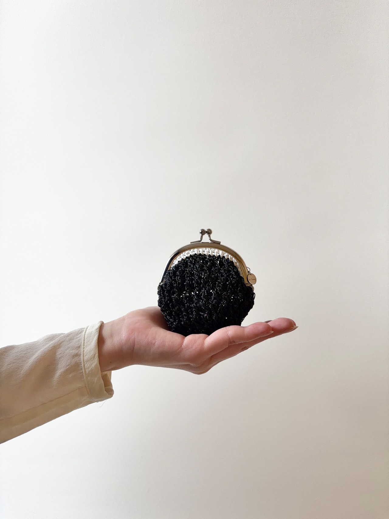 貝のようにぽってりとしたシルエットの手のひらサイズの蝦蟇口財布。